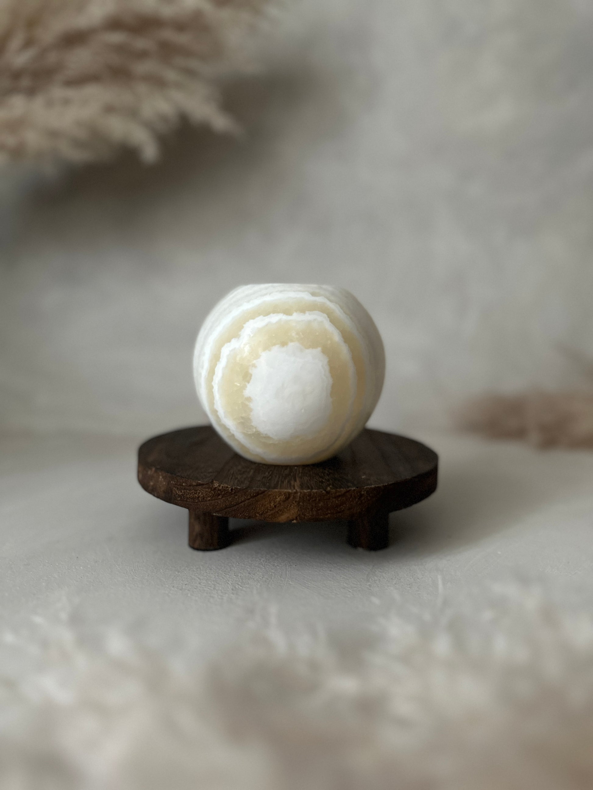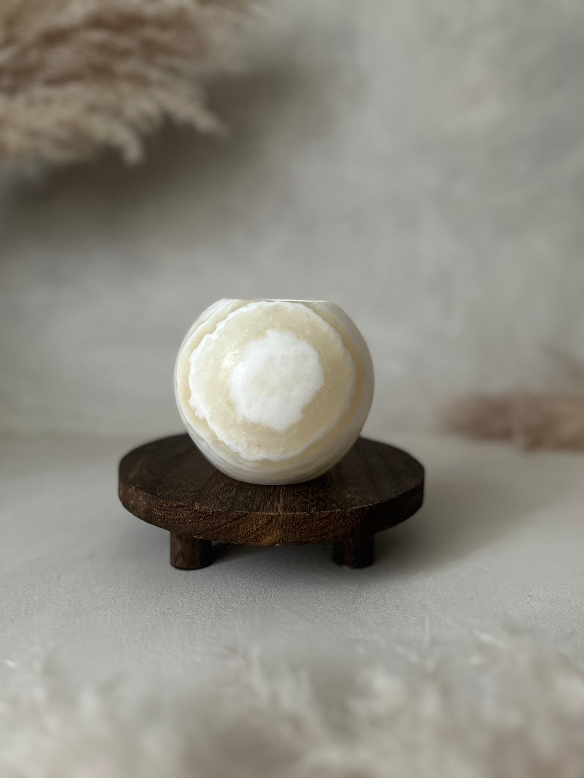 Zur Pflege empfehlen wir, den Alabaster nicht mit Wasser zu reinigen, sondern vorsichtig mit einem trockenen Tuch abzuwischen. Für optimalen Schutz legen Sie Sand in den Boden, um den Alabaster vor Wachs zu bewahren.