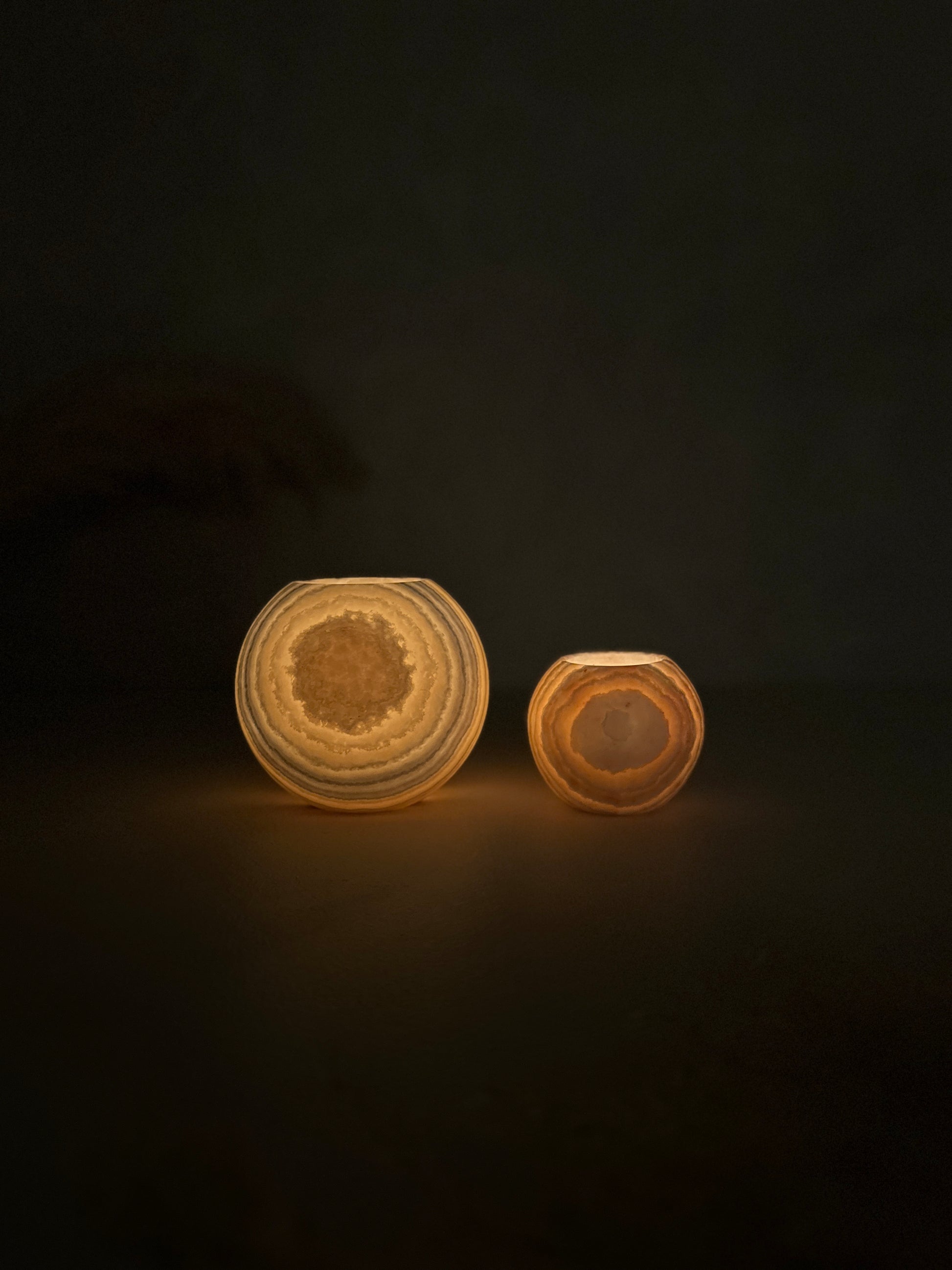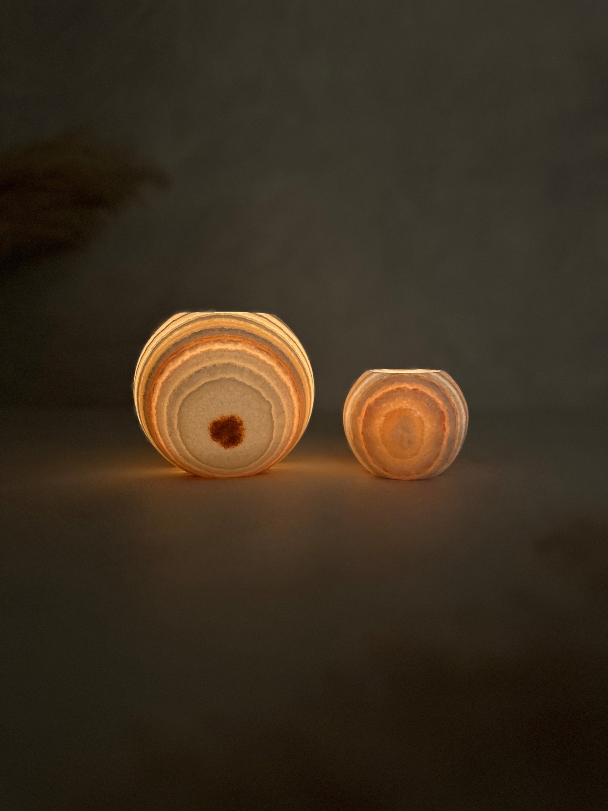 Dieses Set aus natürlichem ägyptischem Alabaster ist das perfekte Paar! Die einzigartige Maserung und die natürlichen Variationen im Stein erzeugen in jedem Stück ein einzigartiges Muster, sodass keine zwei Stücke genau gleich sind.