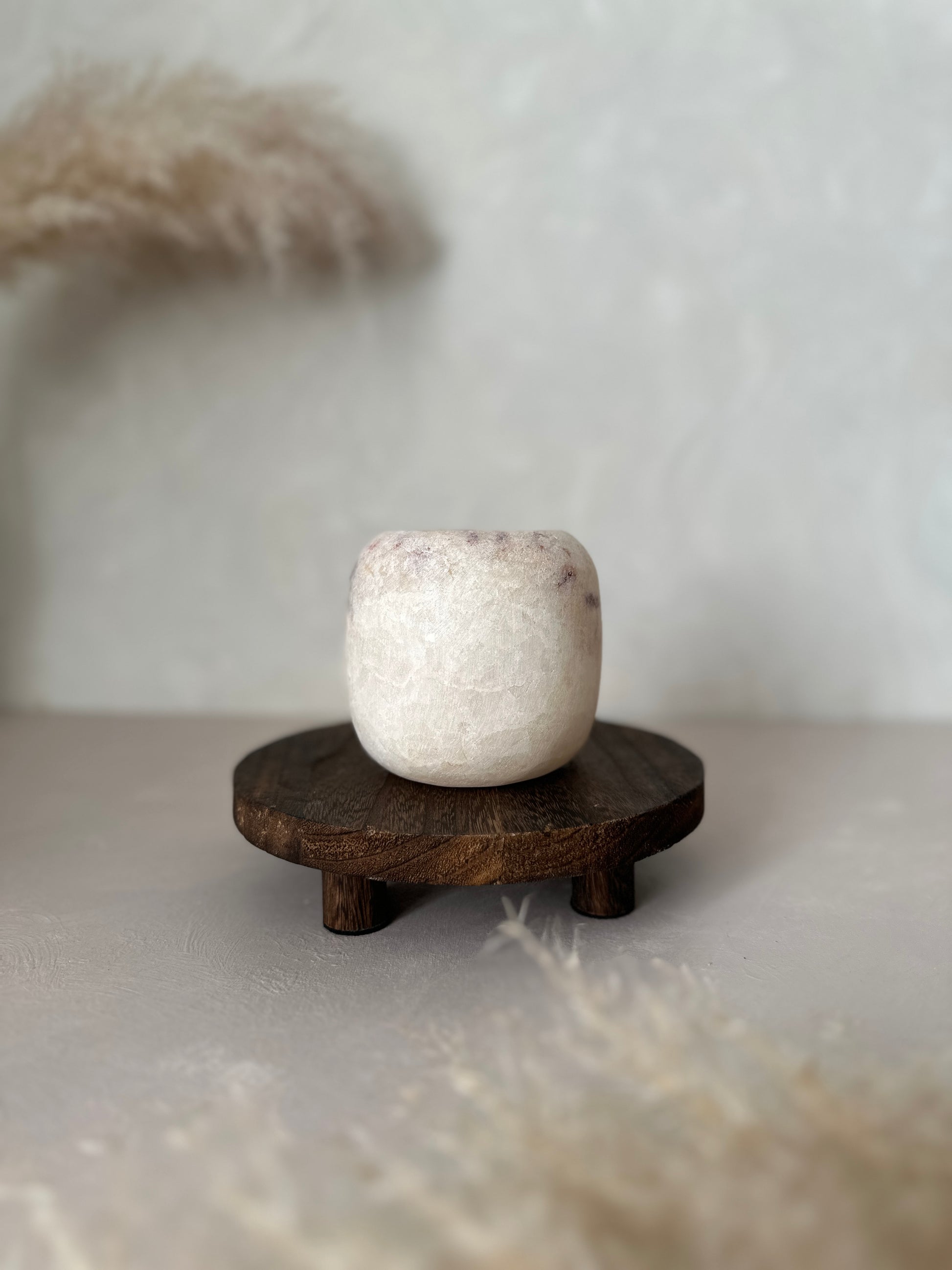 Jeder Kerzenhalter ist aus natürlichem ägyptischem Alabaster gefertigt und hat seinen eigenen, einzigartigen Charakter. Die sanften Elfenbeintöne und feinen Adern variieren von Stück zu Stück, wodurch jeder Kerzenhalter wirklich einzigartig ist.