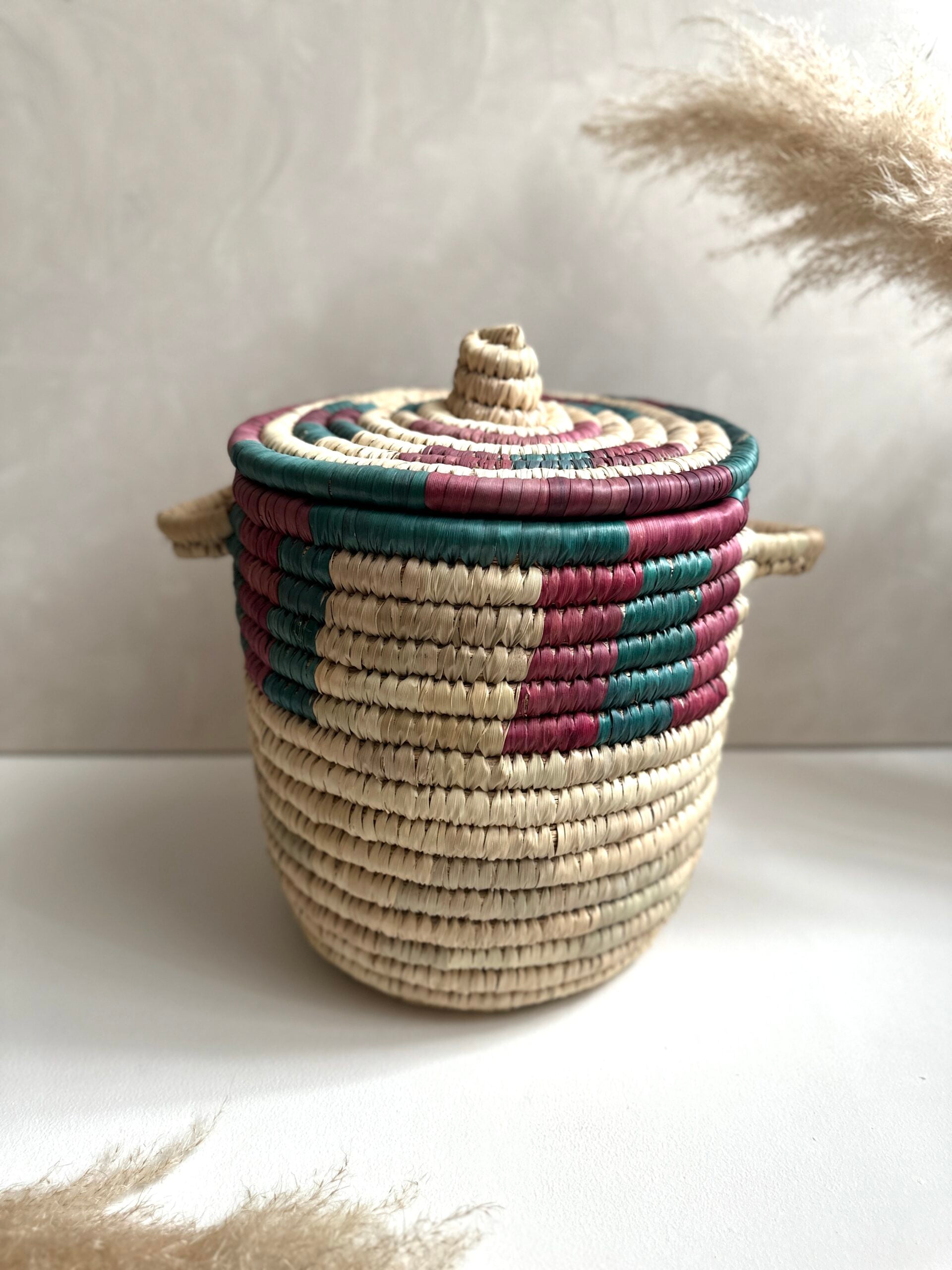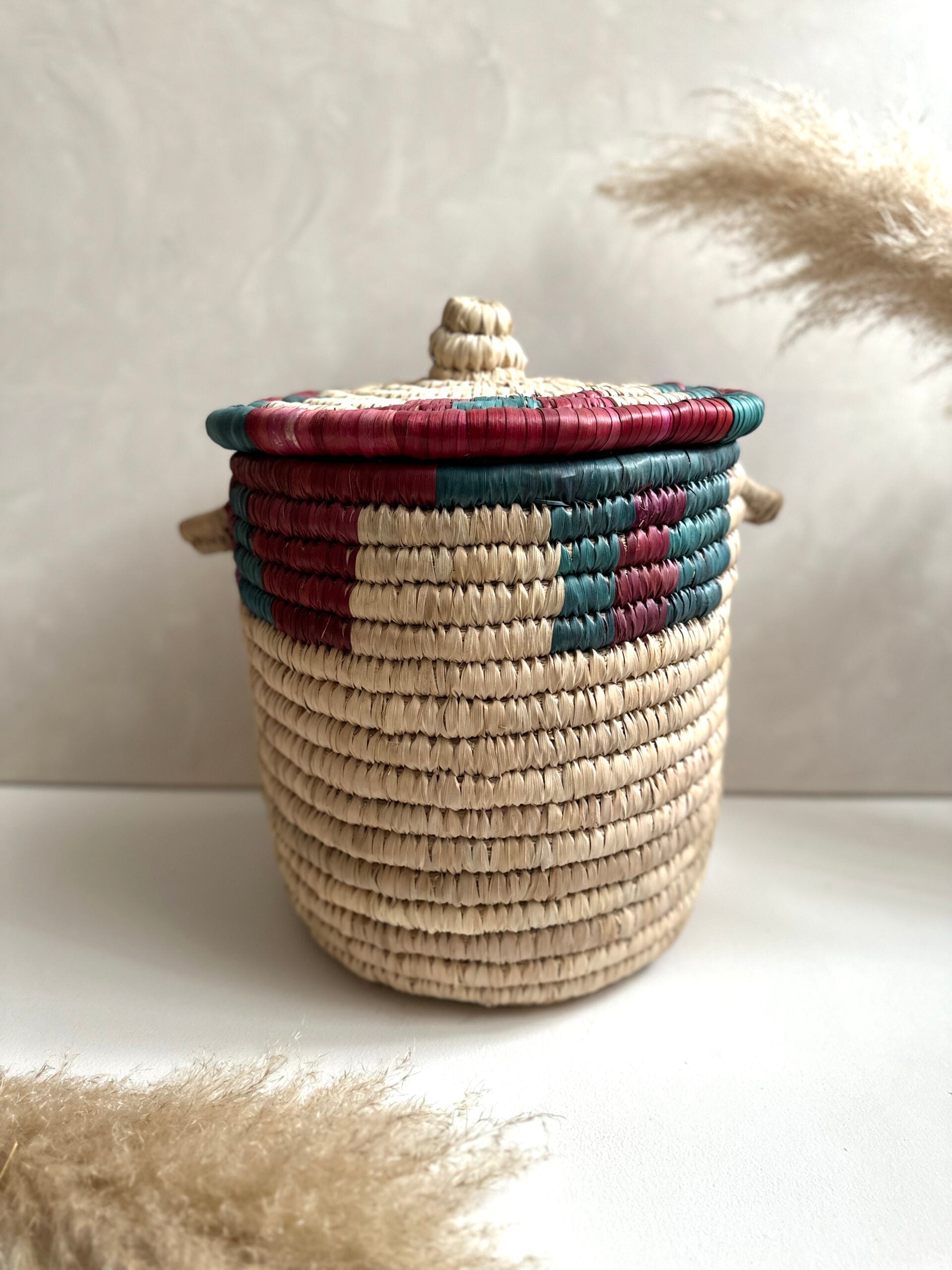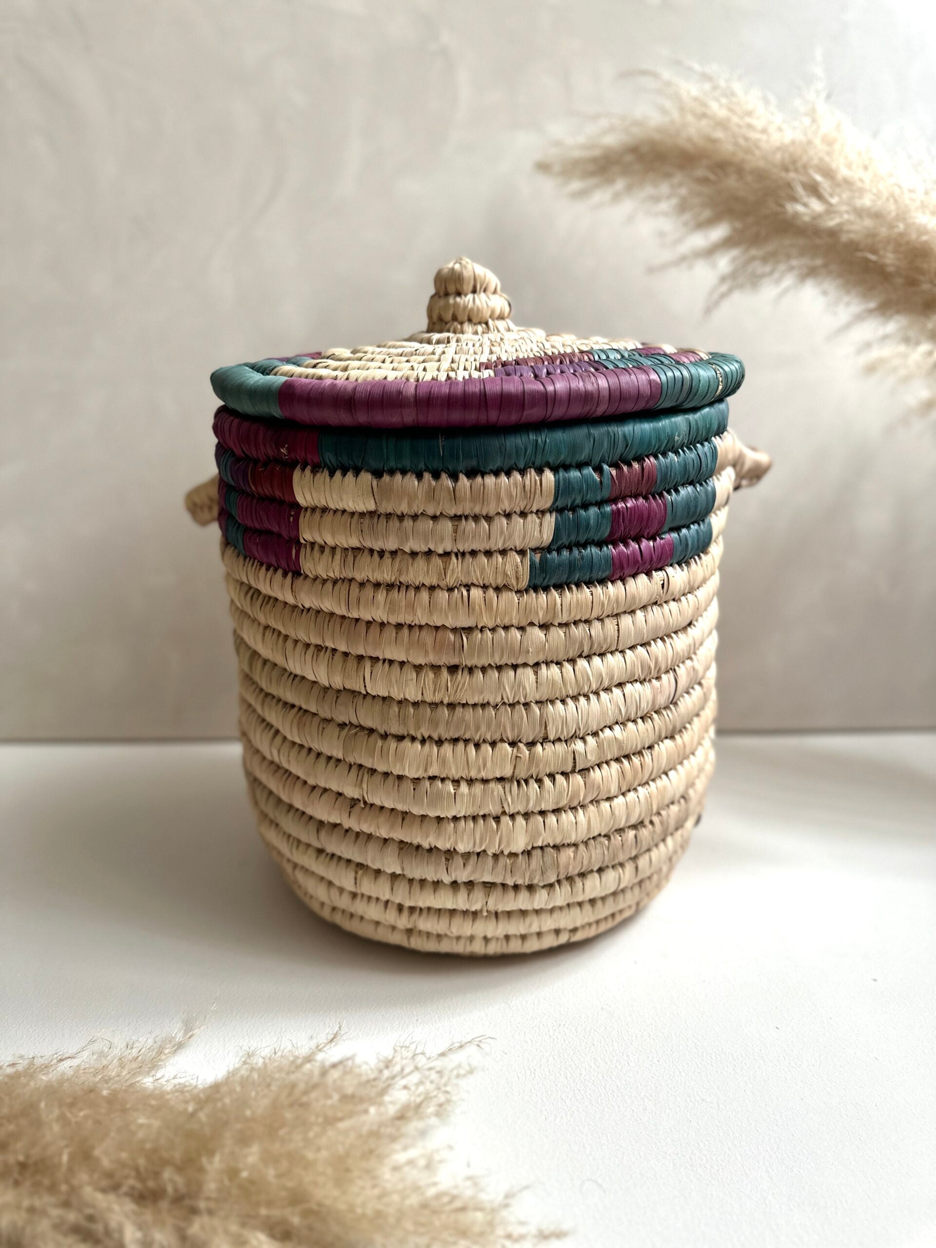 Lernen Sie unseren Korb „Sarah“ kennen – ein wunderschönes Stück, das Ihrem Raum einen Hauch von Farbe verleiht. Ob zur Aufbewahrung oder Dekoration, seine leuchtenden Farbtöne verleihen Ihrer Einrichtung ein fröhliches und verspieltes Element. Jedes Stück ist handgefertigt und ein Unikat. Bitte beachten Sie, dass es zu geringfügigen Größenabweichungen und kleinen Unregelmäßigkeiten kommen kann.Aktie