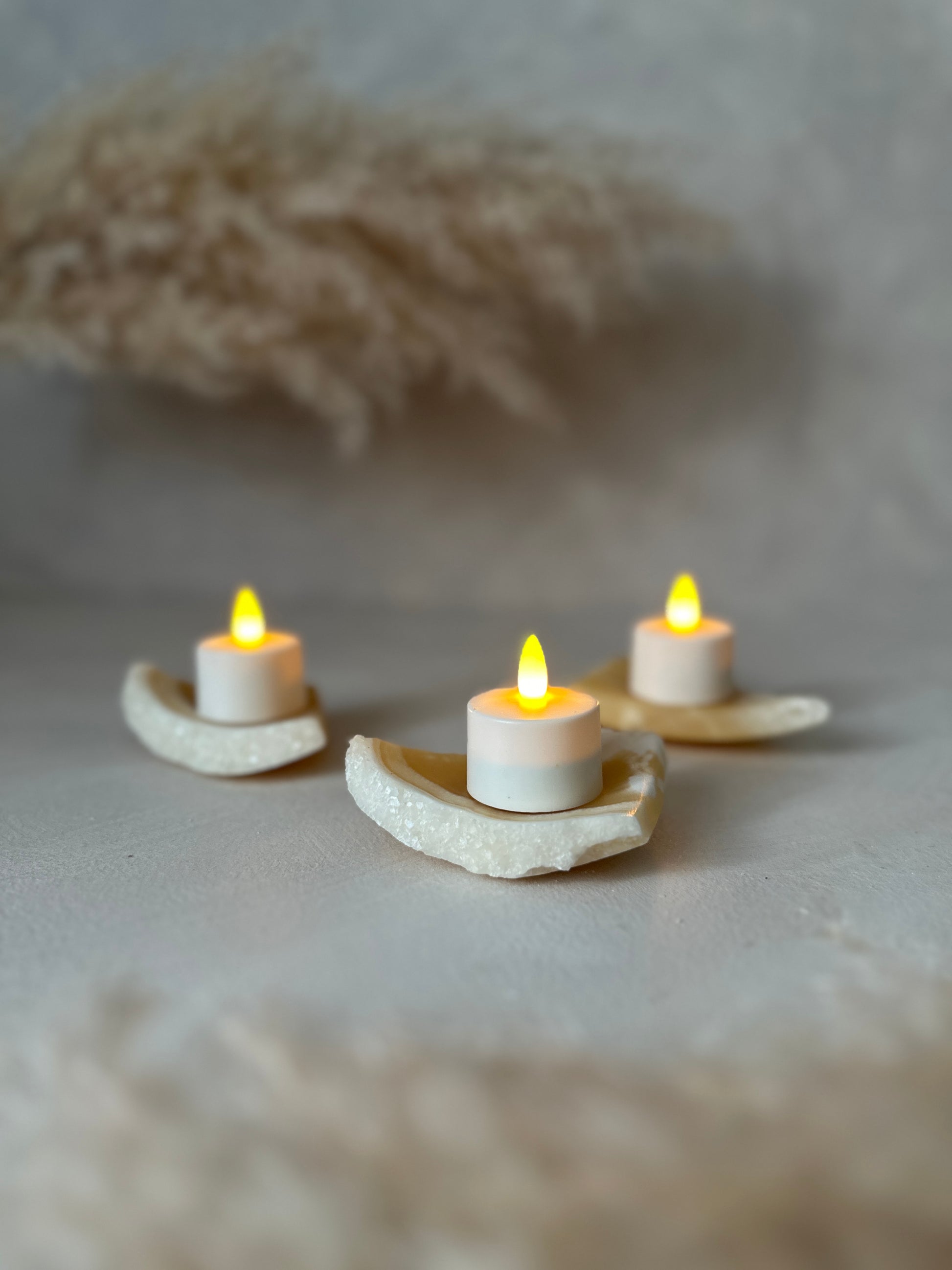Het kan gebruikt worden als sieradenbakje, decoratief oppervlak of gestyled met een (LED) theelichtje. De zachte doorschijnendheid en natuurlijke uitstraling geven elk interieur een warme, ambachtelijke touch. Doordat het stuk in zijn ruwe vorm is afgewerkt, kunnen de randen iets scherper zijn, een natuurlijk gevolg van de steen en de onbewerkte staat ervan.