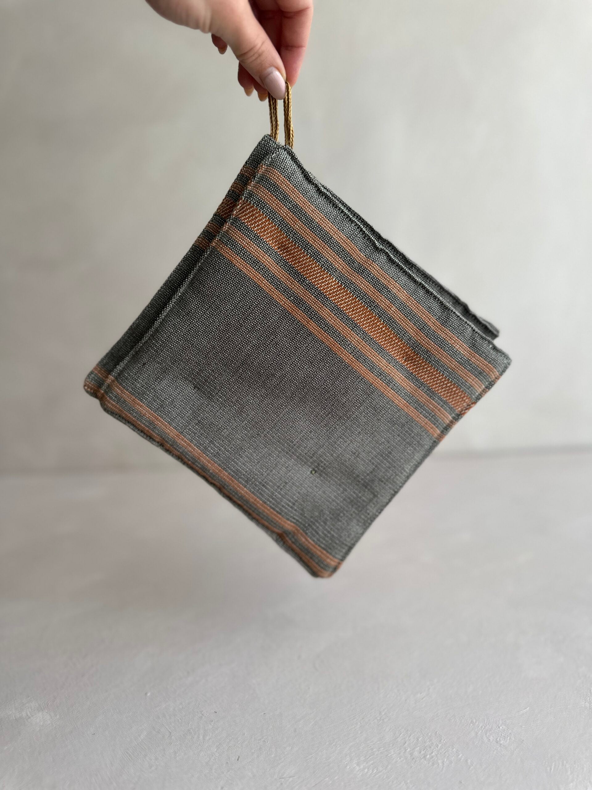 These handwoven pot holders are crafted in Egypt using 100% recycled Egyptian cotton – spun from leftover scraps of fabric that would otherwise go to waste. Each piece is woven by hand in small batches, making every towel truly one of a kind in colour and pattern. Beyond the kitchen, they also work perfectly as placemats.