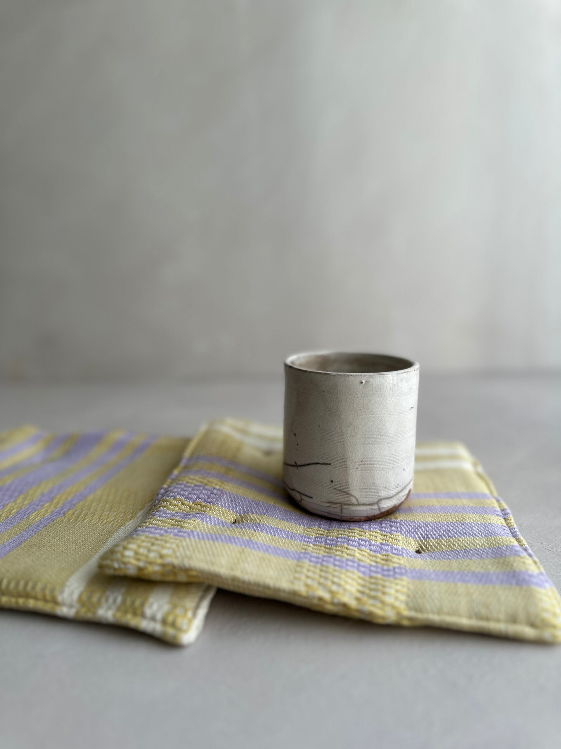 These handwoven pot holders are crafted in Egypt using 100% recycled Egyptian cotton – spun from leftover scraps of fabric that would otherwise go to waste. Each piece is woven by hand in small batches, making every towel truly one of a kind in colour and pattern. Beyond the kitchen, they also work perfectly as placemats.