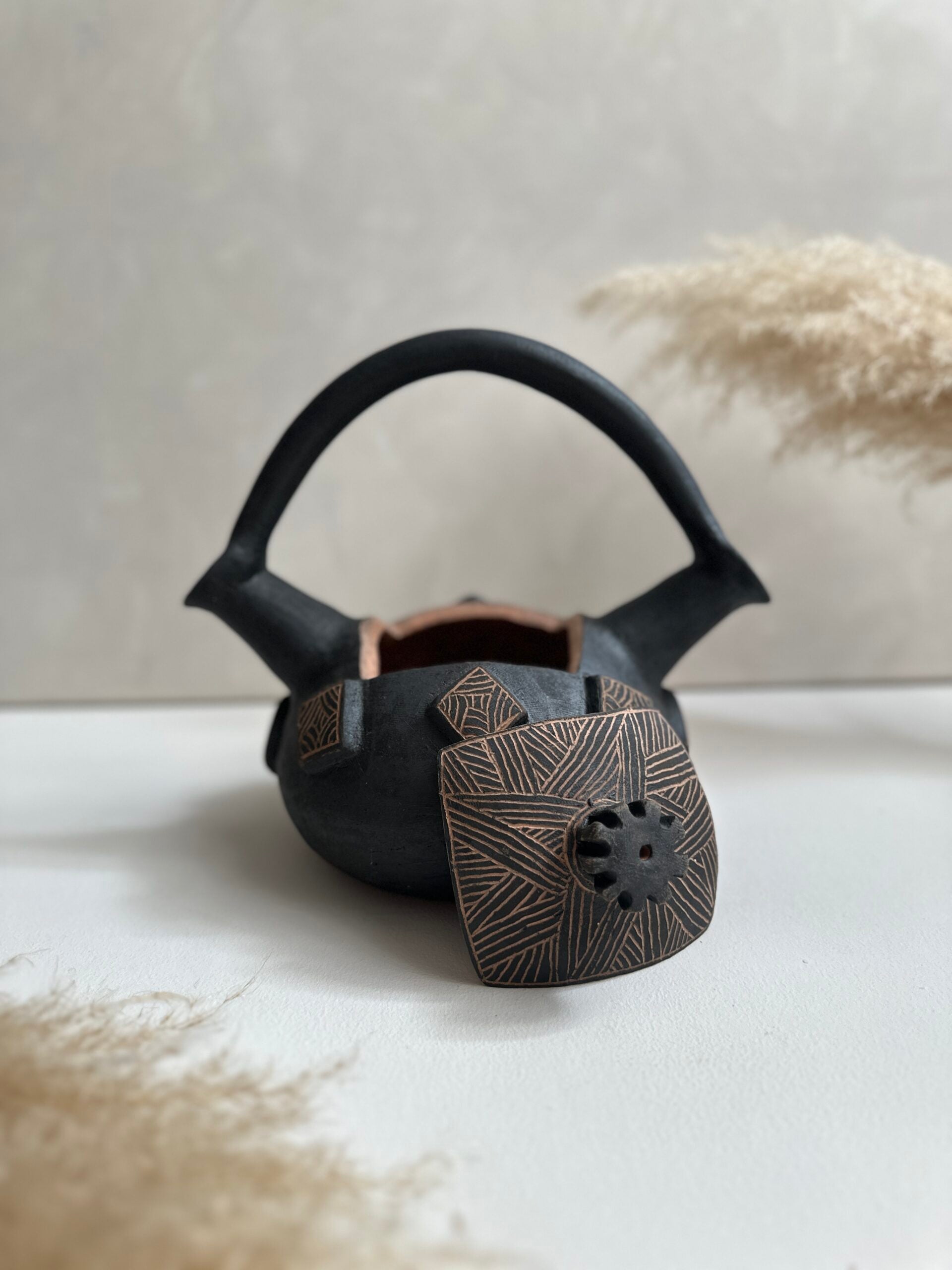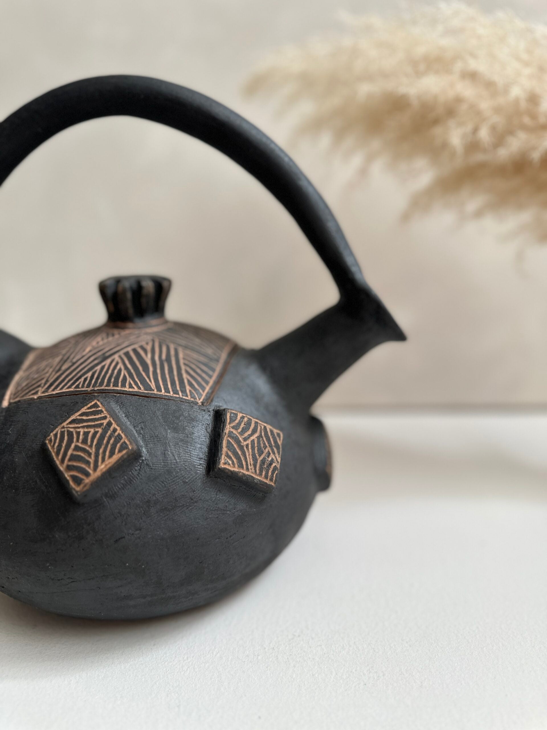 More than just a teapot, it's a piece of art. Its captivating design and craftsmanship make it a stylish addition, adding beauty wherever it stands. Combine with our Vase | Tunis to create a beautiful set. Be aware of small size differences and imperfections. Each piece is completely handmade and unique.